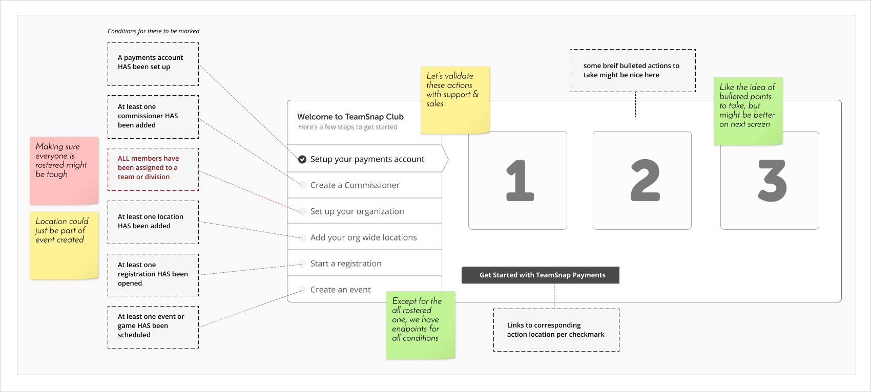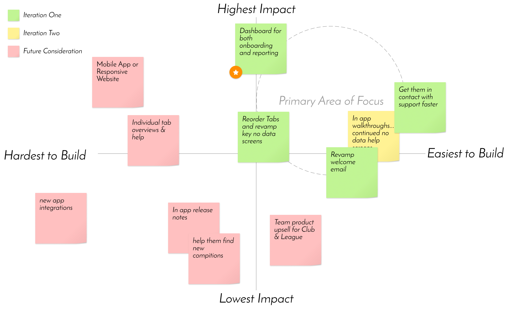 I wanted to make sure everyone was included from the start so we were all invested and in lock step throughout. We new the issues, now it was time to find a solution. So to kick this part of the project off I ran a brainstorming session with our project team as well as members from CX and sales. It was a simple prompt, how might we improve the onboarding experience for Club & League Users?.