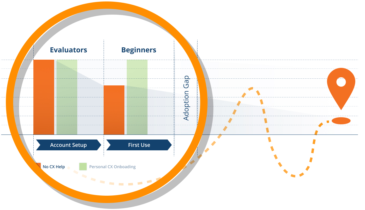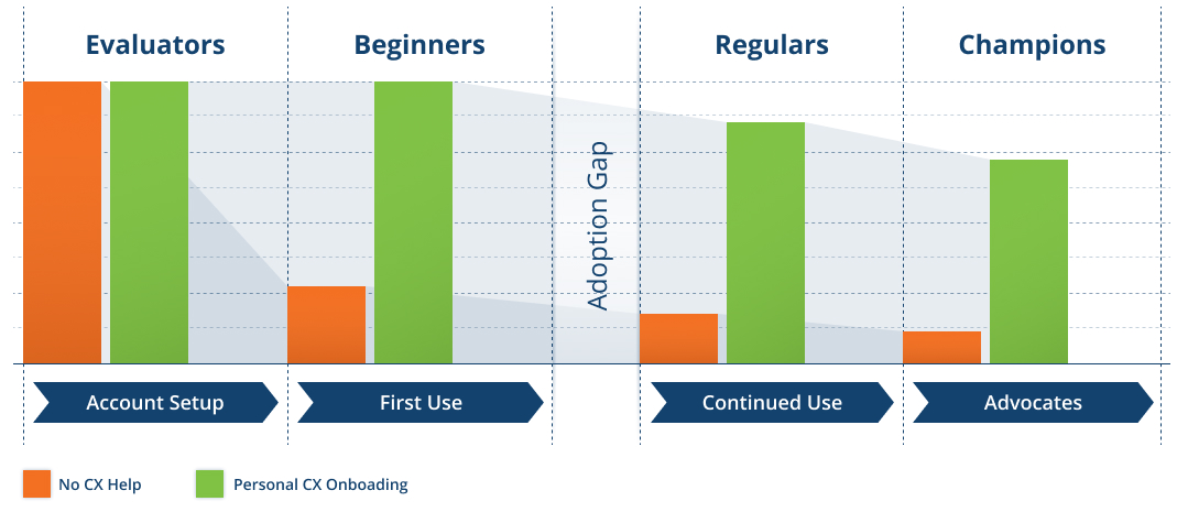 There was data to back all this up too. We were seeing extremely low product adoption without a personal onboarding from CX. Less than 20% success without onboarding vs greater than 85% adoption with a personal CX onboarding.